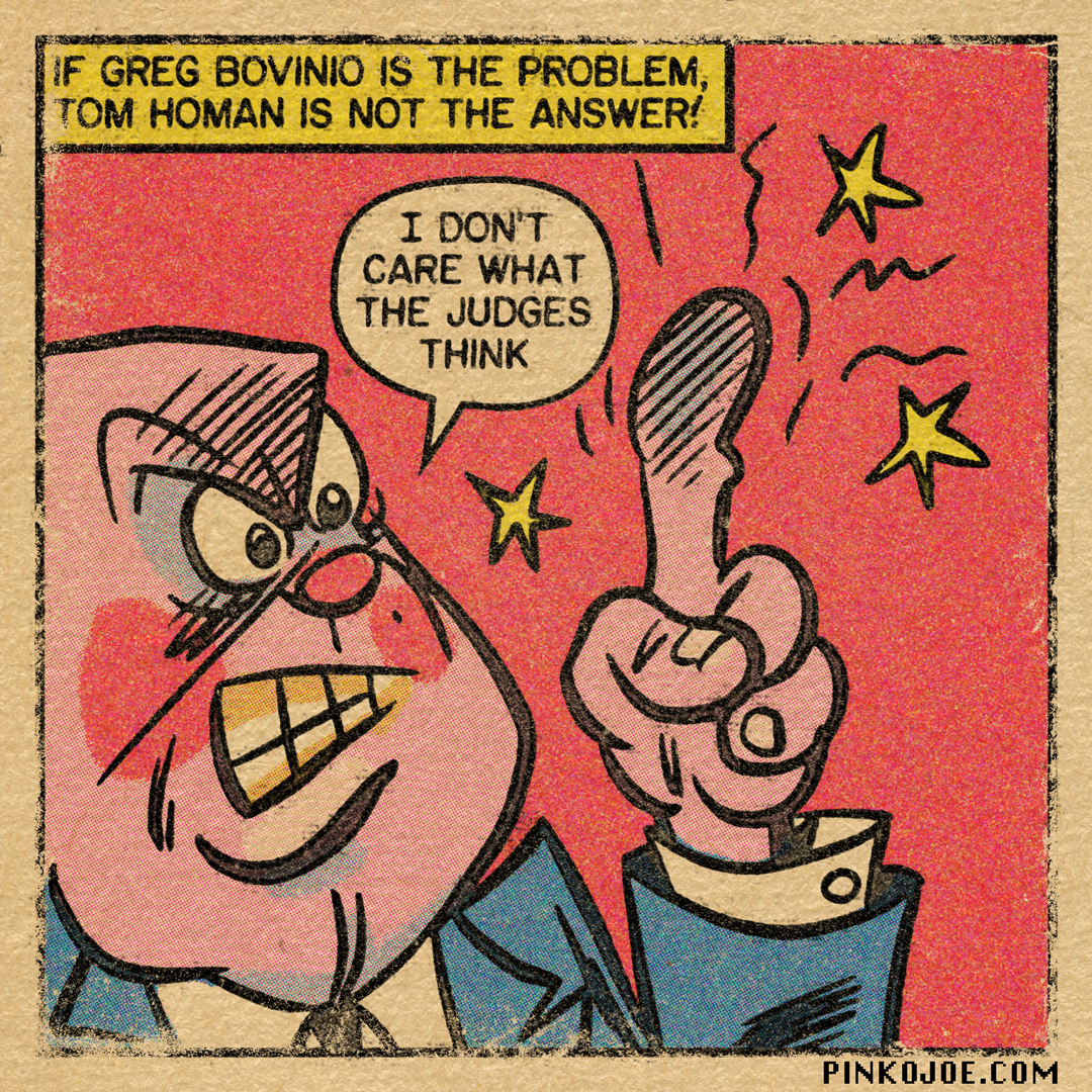 Bovino is out. SO WHAT?! He was a bagman for the boys downtown! He was an errand boy sent by grocery clerks. Homan is CORRUPT! Ask him about the bag of $50,000 in bribes he accepted! Don’t let up the pressure! ICE MUST BE DISSOLVED! Contact your Senators.